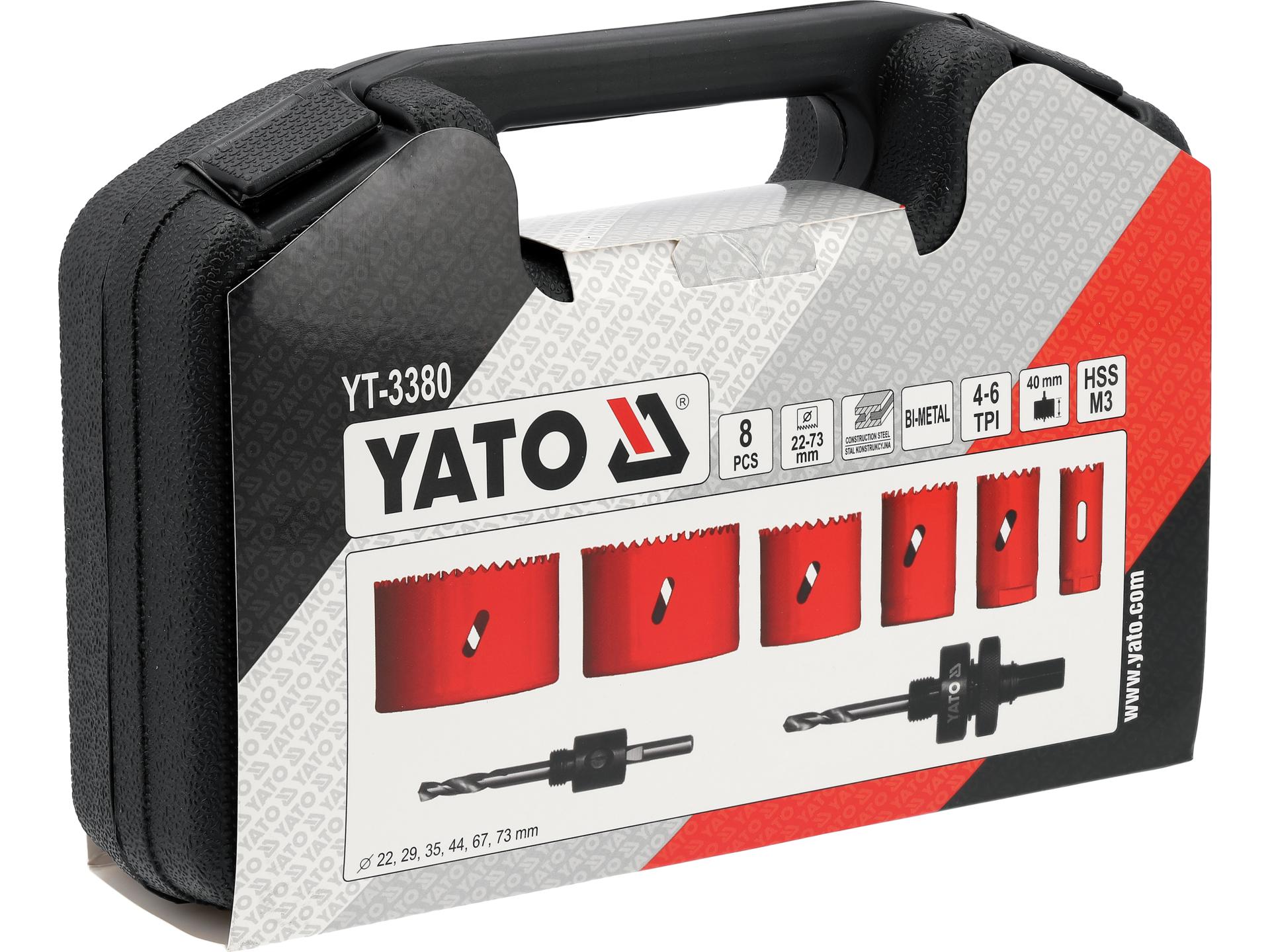 Setați conținutul: ferăstrău cu gaură bimetal x6 (Ø22 mm, Ø29 mm, Ø35 mm, Ø44 mm, Ø67 mm, Ø73 mm)|suport pentru ferăstrău x2